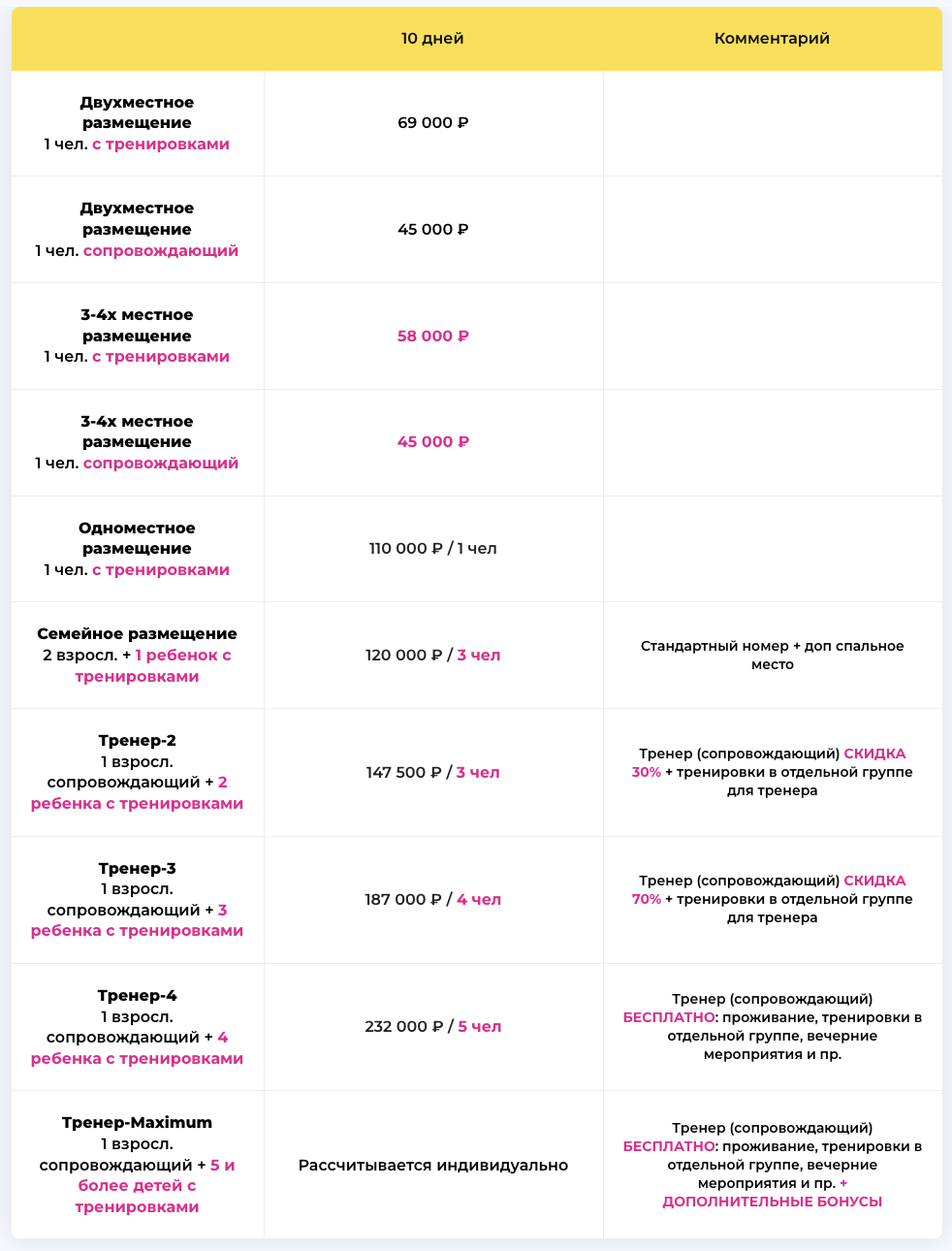 1 взросл. сопровождающий + 5 и более детей с тренировками